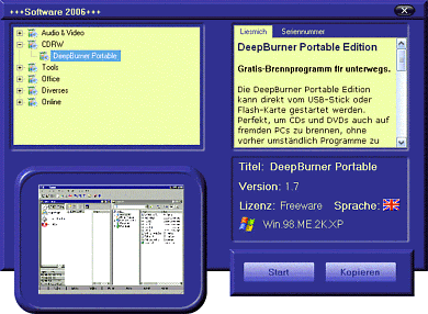 Zur Prodaro CD-Menü Produktseite CD-Menüs von KundenAlle CD-Menüs sind verkleinert in verminderter Qualität dargestellt. Sie möchten ein Bildschirmfoto von Ihrem CD-Menü hier sehen? Dann mailen Sie uns das Bildschirmfoto an info@plsDELETTEprodaro.de Auf Wunsch bieten wir Ihnen als kostenlose Werbemöglichkeit das Setzen eines Links auf Ihre Internetseite an. KURSZEIT GmbH - Erste Hilfe rettet Leben Endlich haben wir eine Software gefunden, mit der sich im Handumdrehen professionelle CD-Menüs erstellen lassen. Wir nutzen Prodaro CD-Menü für unsere Erste-Hilfe-Mediathek, bei denen unsere Kunden von einer Erste-Hilfe-Präsentation bis zum Erste-Hilfe-Lehrvideo einfach und bequem die benötigte Datei anwählen können. Nach intensiver Recherche nach einer dafür geeigneten Software sind wir nun bereits seit mehreren Jahren zufriedene Anwender vom Prodaro CD-Menü, weil der Umfang der Software unschlagbar ist und das Preis-Leistungs-Verhältnis konkurrenzlos ist. Mittlerweile erstellen wir auch ganz einfach ein Menü, welches wir auf aktuellere Medien, wie z. B. USB-Sticks kopieren. Somit können wir unseren Kunden die Erste-Hilfe-Mediathek, perfekt auf die Anforderungen zugeschnitten, anbieten. Rundherum eine gelungene Software! Mirko Schneider nlb medesign Ingenieur Consulting GmbH DPD Deutscher Paket Dienst GmbH & Co. KG INCLUD Multi Channel Systems MCS GmbH Niebling technische Bürsten GmbH SyBra Permatex Objektschutz GmbH K. A. Schmersal GmbH Schmalenberger GmbH + Co. KG Vasa GmbH SM MAGNETTECHNIK GmbH Softwaresammlung Calimax GmbH Thomas Vorderegger E-Mail |