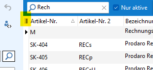 Bündel in einen Vorgang (Rechnung) einfügenBündel werden so wie normale Artikel in Vorgänge eingefügt. Dies ist in Frage-ID 29 unter der Überschrift "Positionen in den Vorgang einfügen" beschrieben. 102.Wie können die Artikel nach einem bestimmten System sortiert werden?Die Artikel im Artikelstamm (Hauptmenü Artikel) oder in der Artikelschnellauswahl (Kunde/Vorgänge>Positionen hinzufügen>Artikel) können dort in ihrer Tabelle nach dem Feld sortiert werden, das Sie in der Titelzeile anklicken. Wenn Sie z. B. auf die Spaltenüberschrift Artikel-Nr. klicken, werden die Artikel nach der Artikelnummer sortiert. Wichtig dabei ist, dass Sie keine Symbole, wie z. B. das Filter-Symbol in der Tabellentitelzeile klicken, sondern auf den Titeltext oder einen freien Bereich in der Titelspalte. Wenn nach einer Spalte sortiert wird, wird dies durch ein kleines Pfeil-Symbol gekennzeichnet. Die Spitze des Pfeils zeigt, ob sich die kleinsten Werte oben oder unten in der Tabelle befinden. In der Spalte Artikel-Nr. kann die Sortierung auf zwei verschiedene Arten erfolgen: